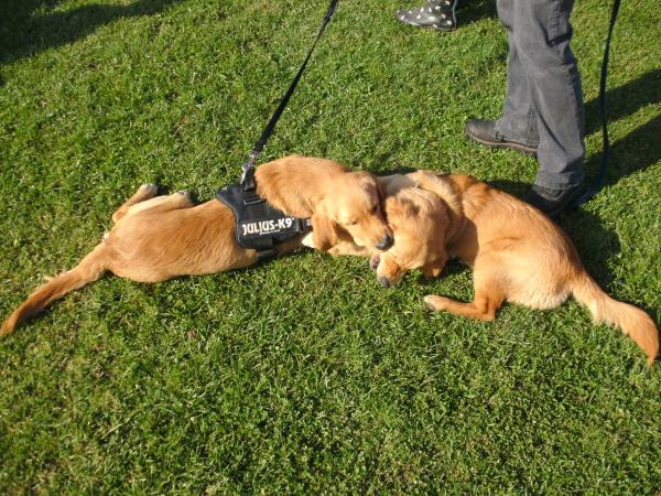 Heute habe ich mit meinem - im wahrsten Sinne des Wortes großen - Bruder Lennox gespielt und auf dem Hundeplatz trainiert.