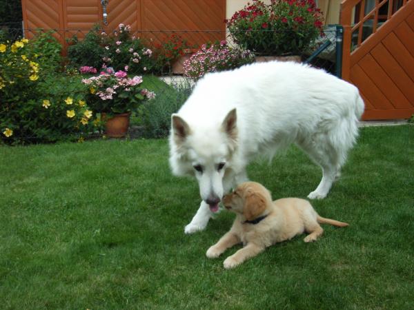Balu, ein weißer Schäferhund (11 Jahre), zu Besuch