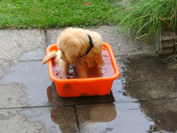 Emma, unsere kleine Hexe, benutzt den Wassernapf schon als Pool. Sie knabbert [u]alles [/u]an (Teppichboden, Sofa, Stühle, Tisch...). Auf ihren Namen hört sie schon ganz gut, wenn sie will.